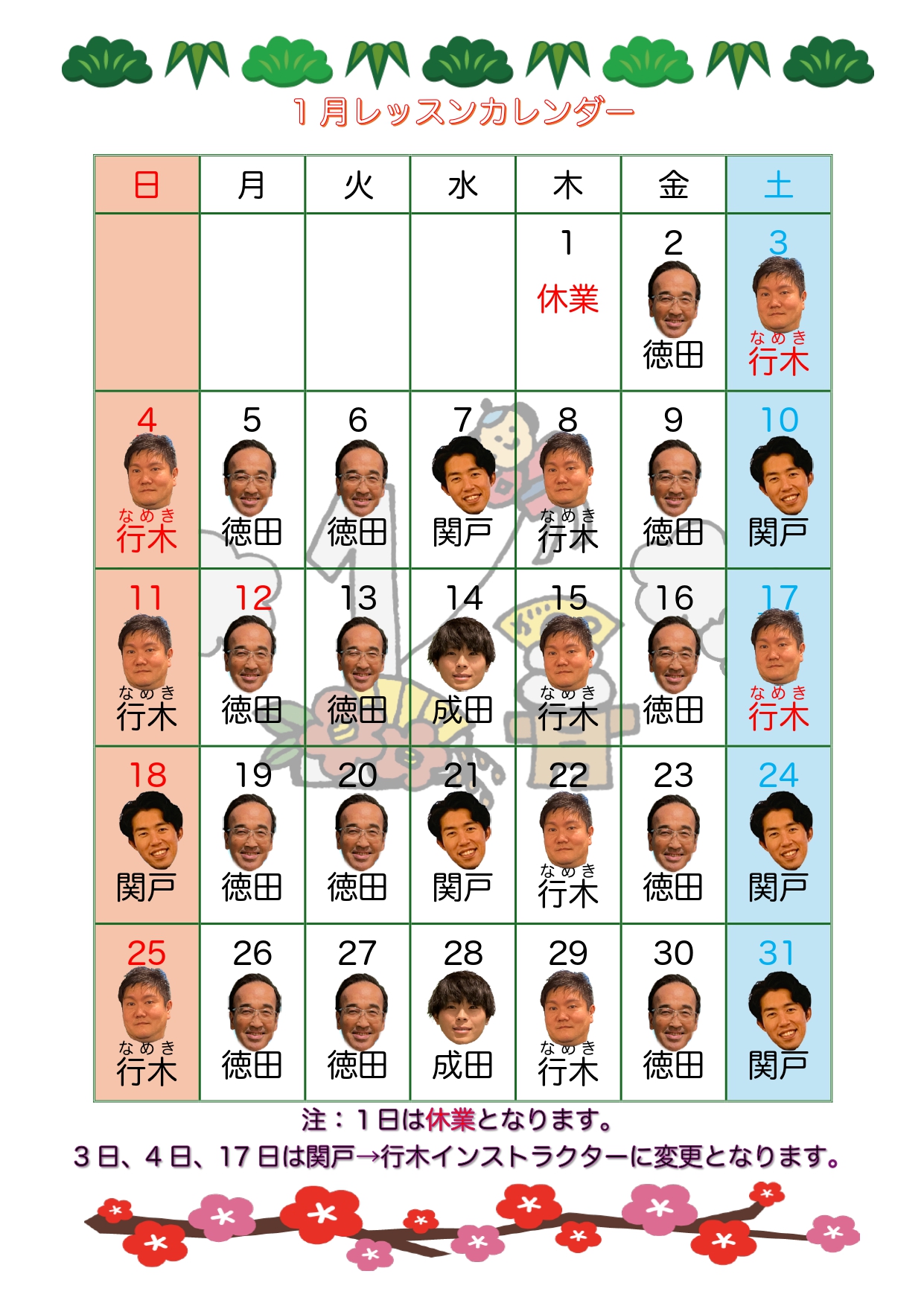 徳重店 1月レッスンカレンダー🎍