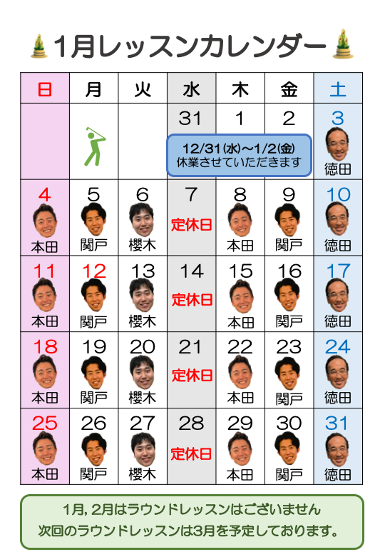 ナゴヤドーム前店 1月レッスンカレンダー🏌️♀️✨