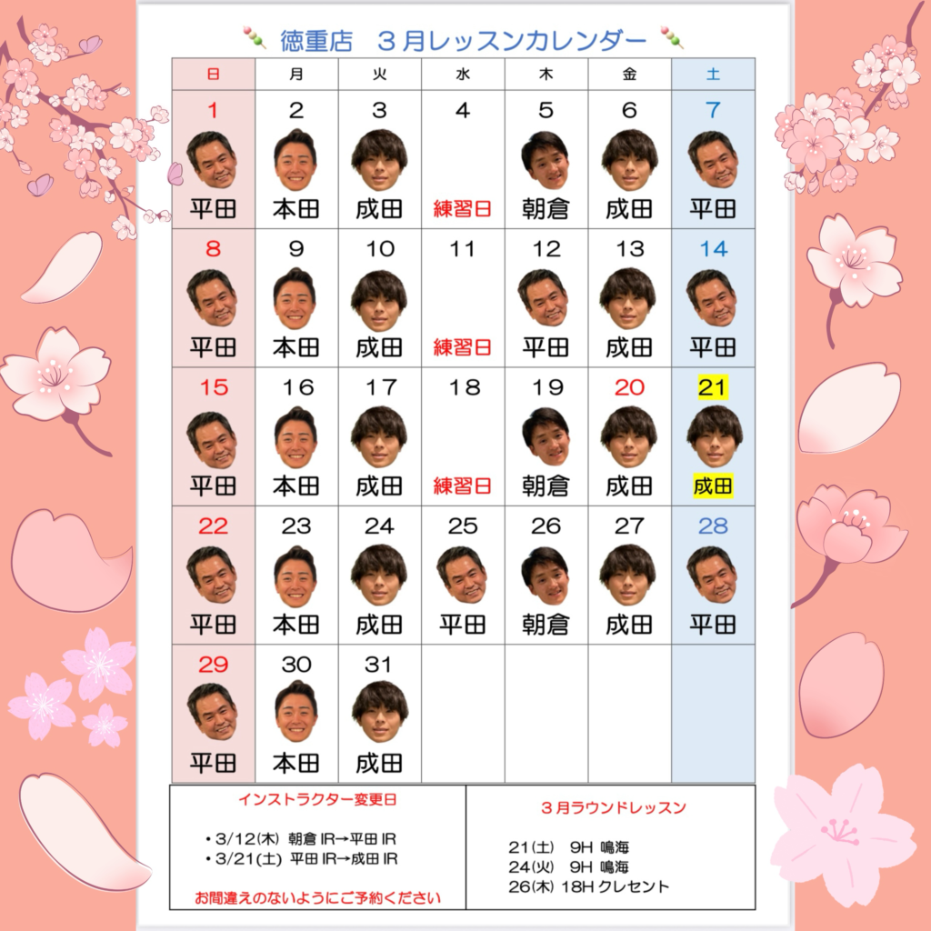徳重店3月レッスンカレンダー🌸