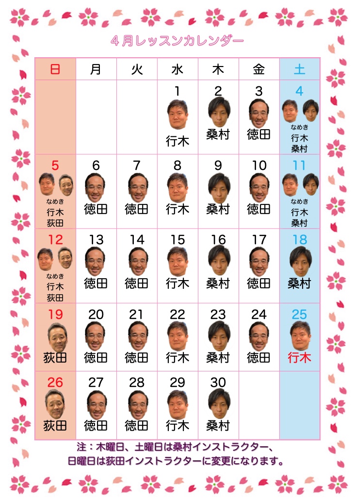 こんにちは(・∇・) 則武店フロントの川崎です☺︎カレットゴルフアカデミーの今後の予定は4/22(水)残り僅か、5/28(木)通常コースレッスン。クレセント。4/15(水)満席、5/13(水)9Hのハーフコースレッスン…