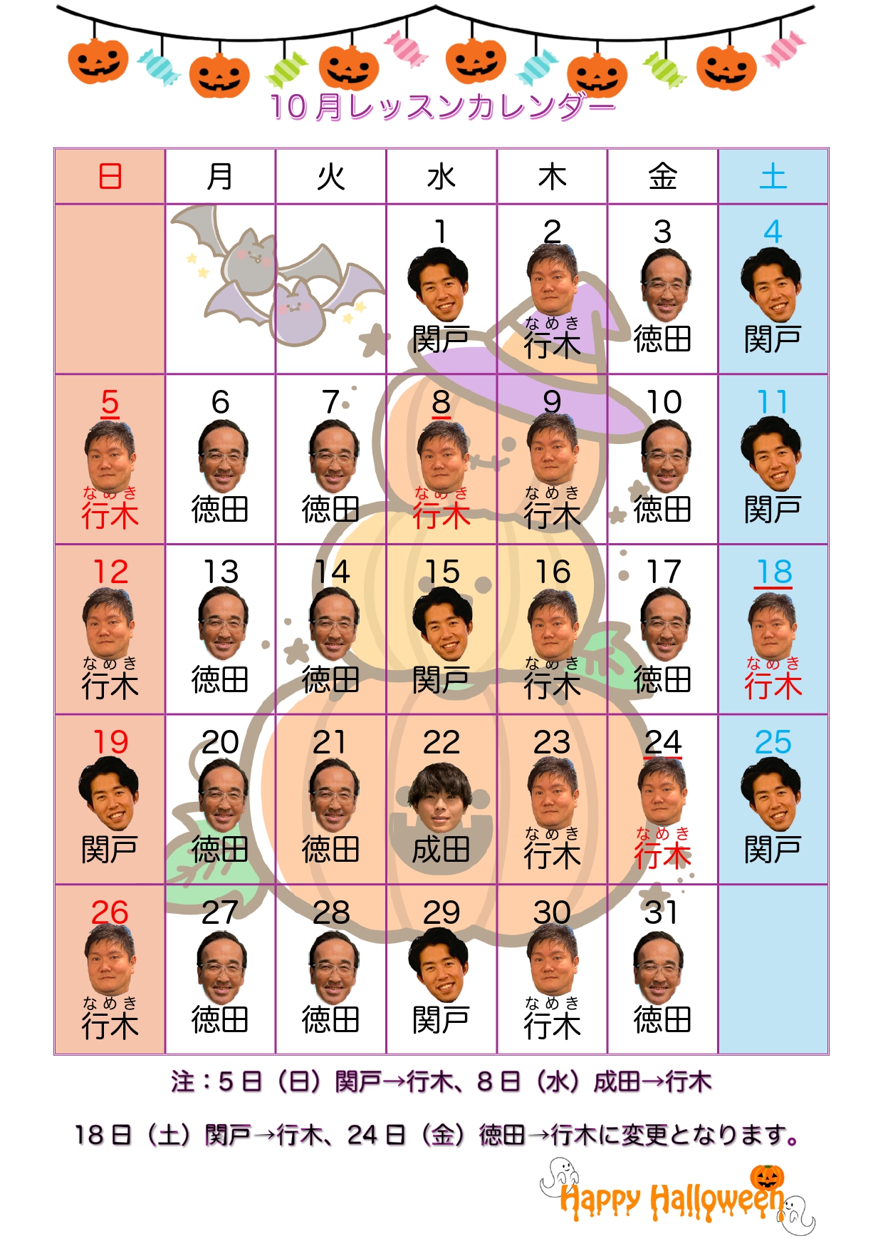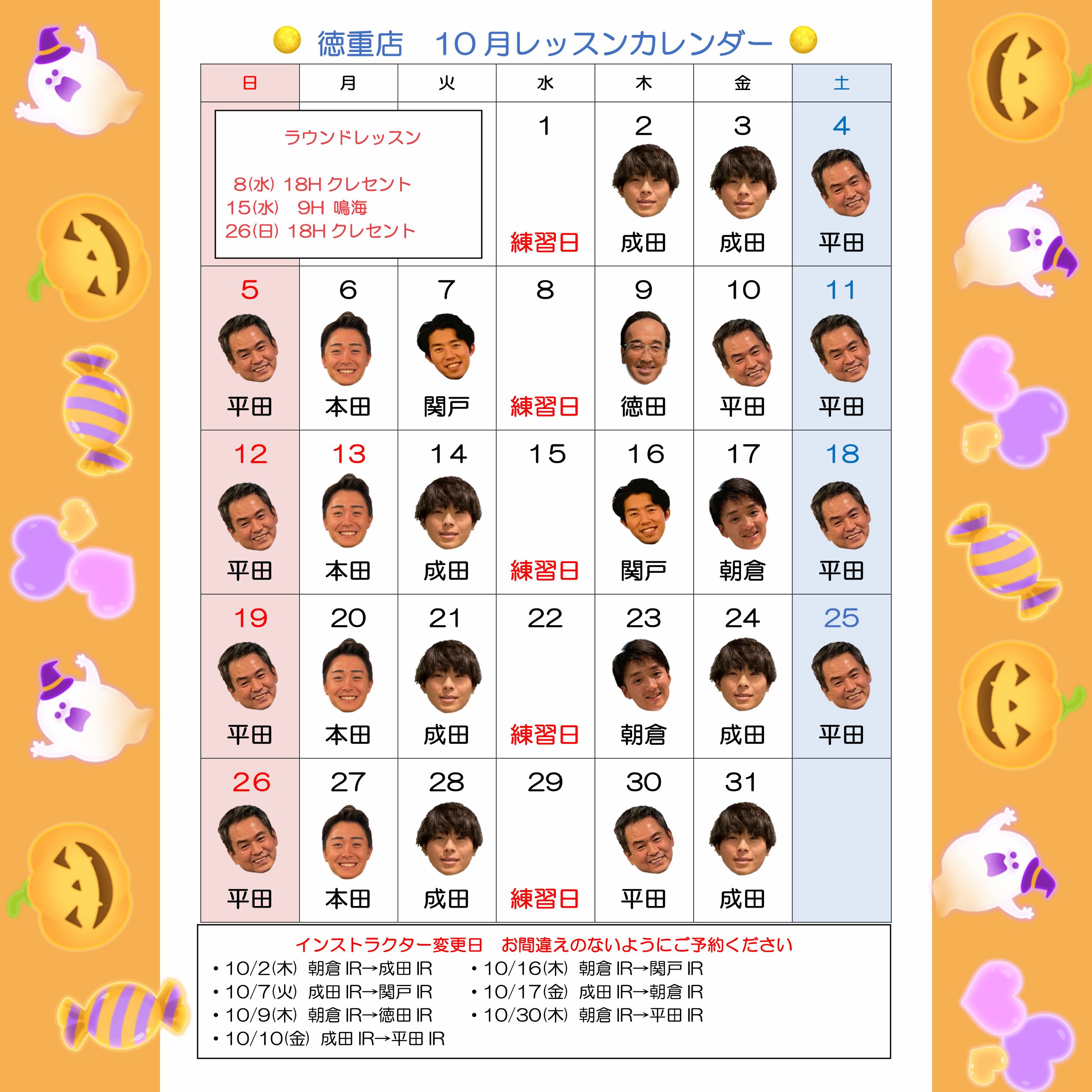 こんにちはー!徳重店の青山です😉🫶 10月のカレンダーが出来上がりましたー🗓✨️ インストラクターの変更日があります⚠️ 10/2(木)朝倉IR→成田IR 10/7(火)成田IR→関戸I…