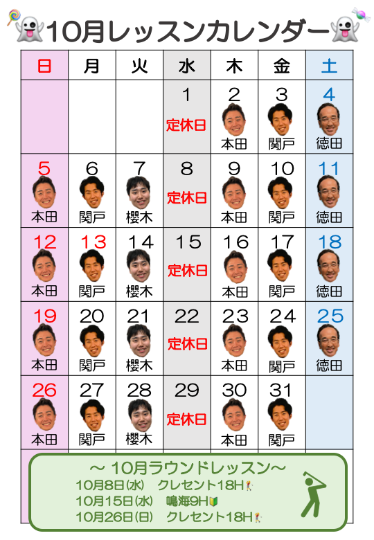 ナゴヤドーム前店 10月レッスンカレンダー🏌️♀️